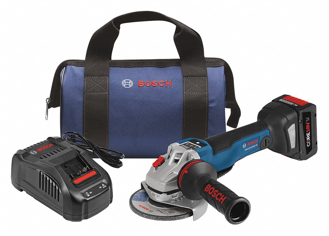 BOSCH 4 1/2 in Cordless Angle Grinder Kit, 18.0 V Voltage, 9,000 RPM No Load RPM, Battery